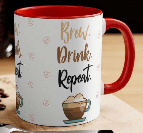 BREW. DRINK. REPEAT. {Red/Green/BlackGreen} Funny Coffee Mug, 11oz | Funny Gift | Funny Coffee Mug | Coffee Mug