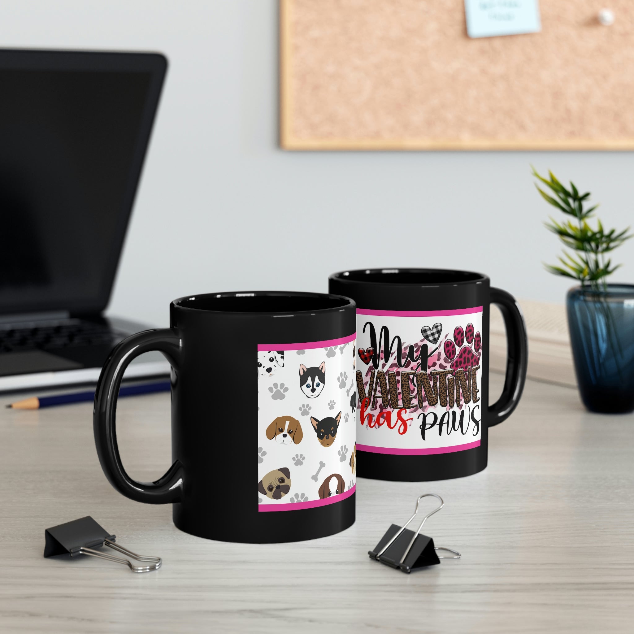 My Valentine Has Paws (Dog) - 11oz Ceramic Black Mug | Cute Dog Coffee Mug | Valentines Day Dog Gift